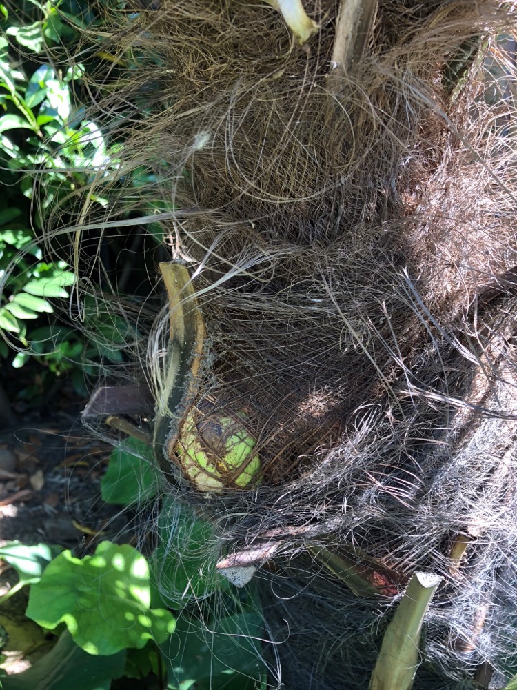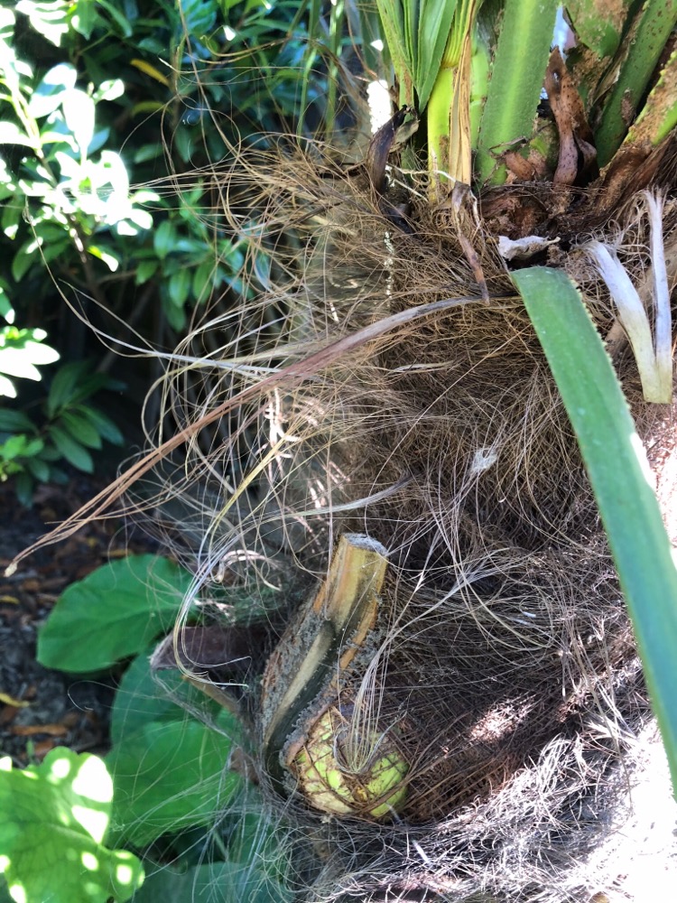Volgens mij bedoeld Dennis hetzelfde als wat ik met Trachycarpus princeps heb meegemaakt? De groei in de top van de palm hapert overduidelijk en de kans bestaat dat de uitgroei van nieuw blad definitief tot stilstand komt en er wellicht onderaan de stam een ontsnappings poging wordt ondernomen ter vervanging van de geblokkeerde groeikern? Het zou dan een nieuwe vervangende kern kunnen zijn ontstaan uit het meristeem aan de voet van de palm. Bij mijn princeps was dat waarschijnlijk het geval, omdat de bladeren van de vervangende kroon in eerste instantie ongedeeld waren. Dat het een 'slapende' zaailing betrof die alsnog ontkiemde, leek me toen niet erg waarschijnlijk.