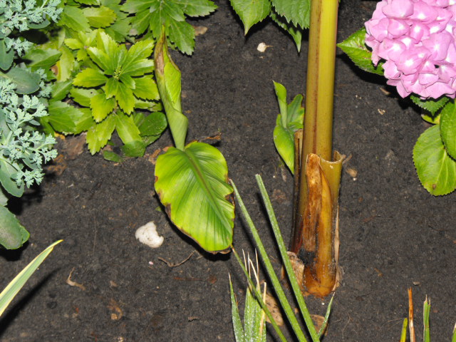 Ik ben niet gek natuurlijk, als het de musa basjoo red blijkt te zijn komen er volgend jaar wel weer uitlopers terug op deze plek in m'n tuin, ik heb namelijk de musa basjoo regulair erbij gezet, zag deze bij tuincentrum 'het oosten' in Aalsmeer, dus ik dacht ach ik ben hier niet voor niets natuurlijk.