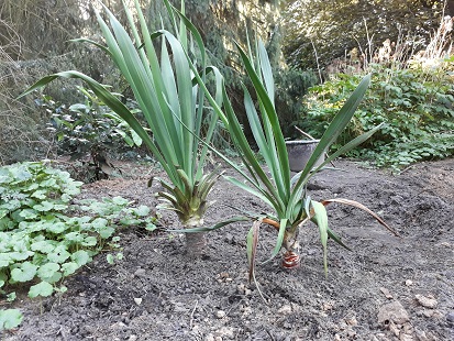 Onlangs heb ik bij iemand wat planten uit de tuin mogen graven: drie palmpjes en een aantal yucca's. Alles stond in vrijwel puur zand. De yucca's waren gestekt en hadden een beperkte wortelkluit.