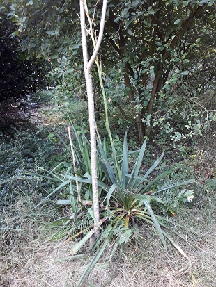 Ter vergelijking de andere yucca's die hier al jaren staan. Deze bloeien wit, voor zover dat determinatiewaarde heeft: