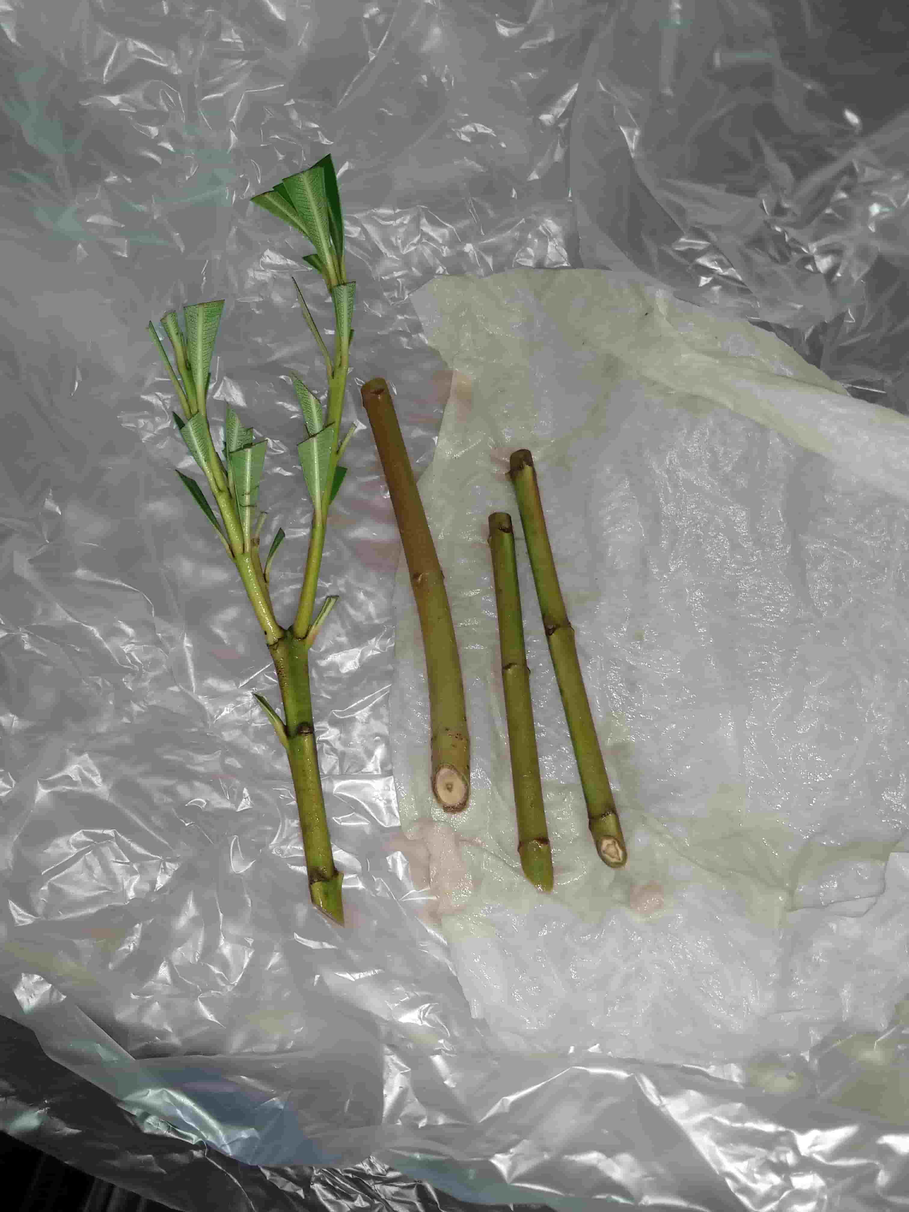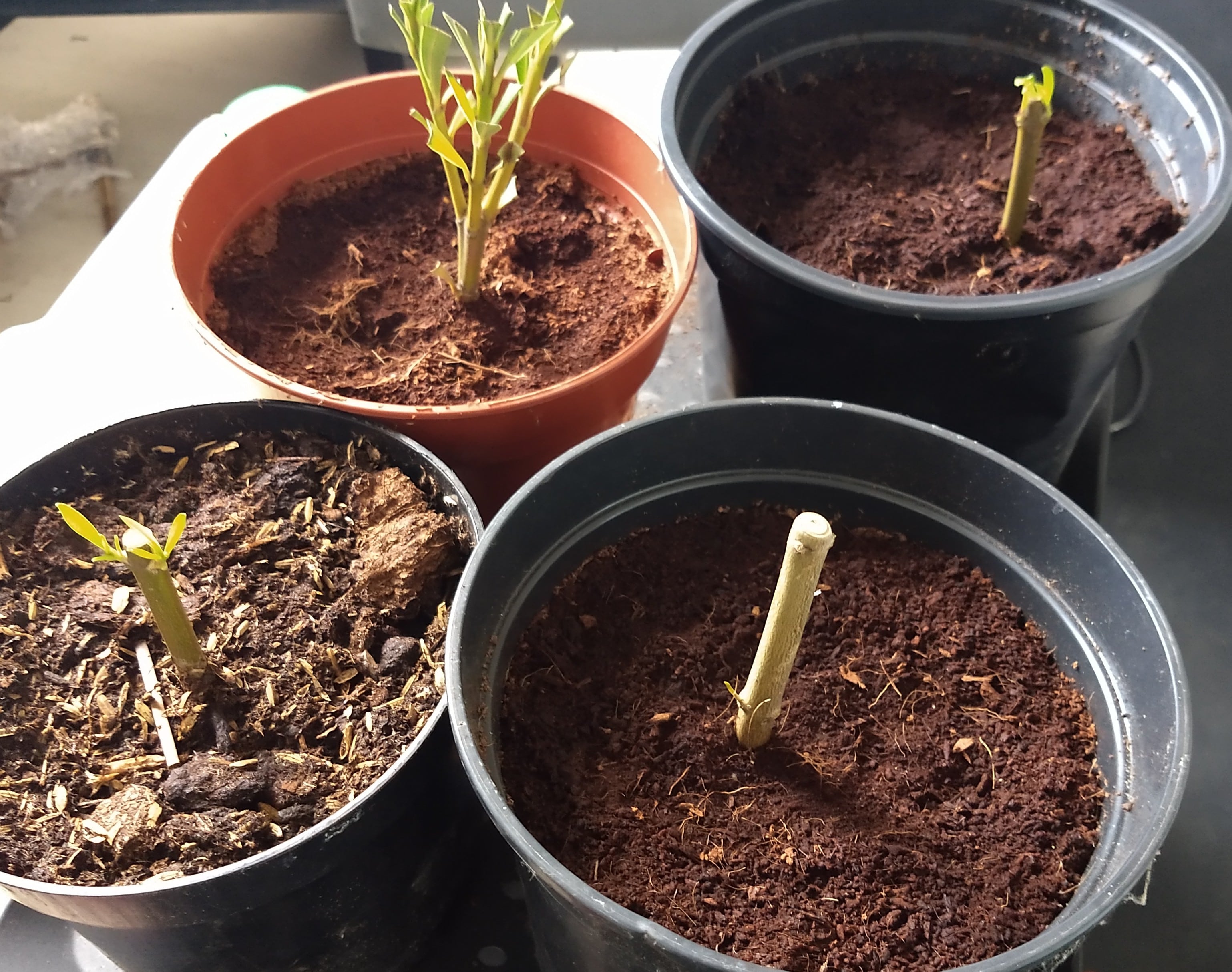 Van de 4 stekken lijkt alleen de kopstek te zijn mislukt, mogelijk knip ik die wat verder af en zet deze dan toch nog in water.