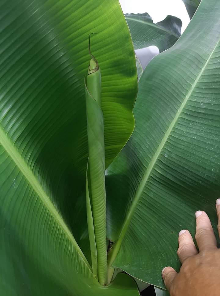 De "flag leaf" zit dus gekoppeld aan de bloem knop, waar de bananen onder zitten.