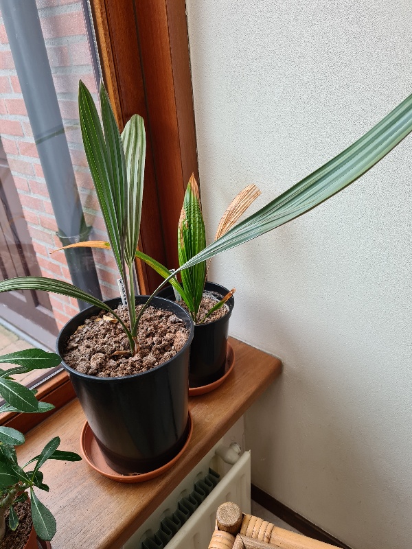 Ik heb 5 Bismarckia die opkomen en ze gaan eerst diep in de grond waardoor het lang lijkt of ze afgestorven zijn, maar na enige tijd wortelen zonder daglicht breekt de wortel open en komt er een eerste speer uit.