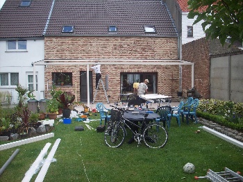 Eindelijk, na weken zwoegen is het terras klaar, tijd om alles te schikken. (a) Dit zal ook wel een tijdje in beslag kunnen nemen, jullie kennen het wel eerst kijken waar kunnen we wat zetten en dan nog eens verplaatsen en nog eens en nog eens tot je denkt dat ziet er goed uit en de volgende dag weer eens :lol: