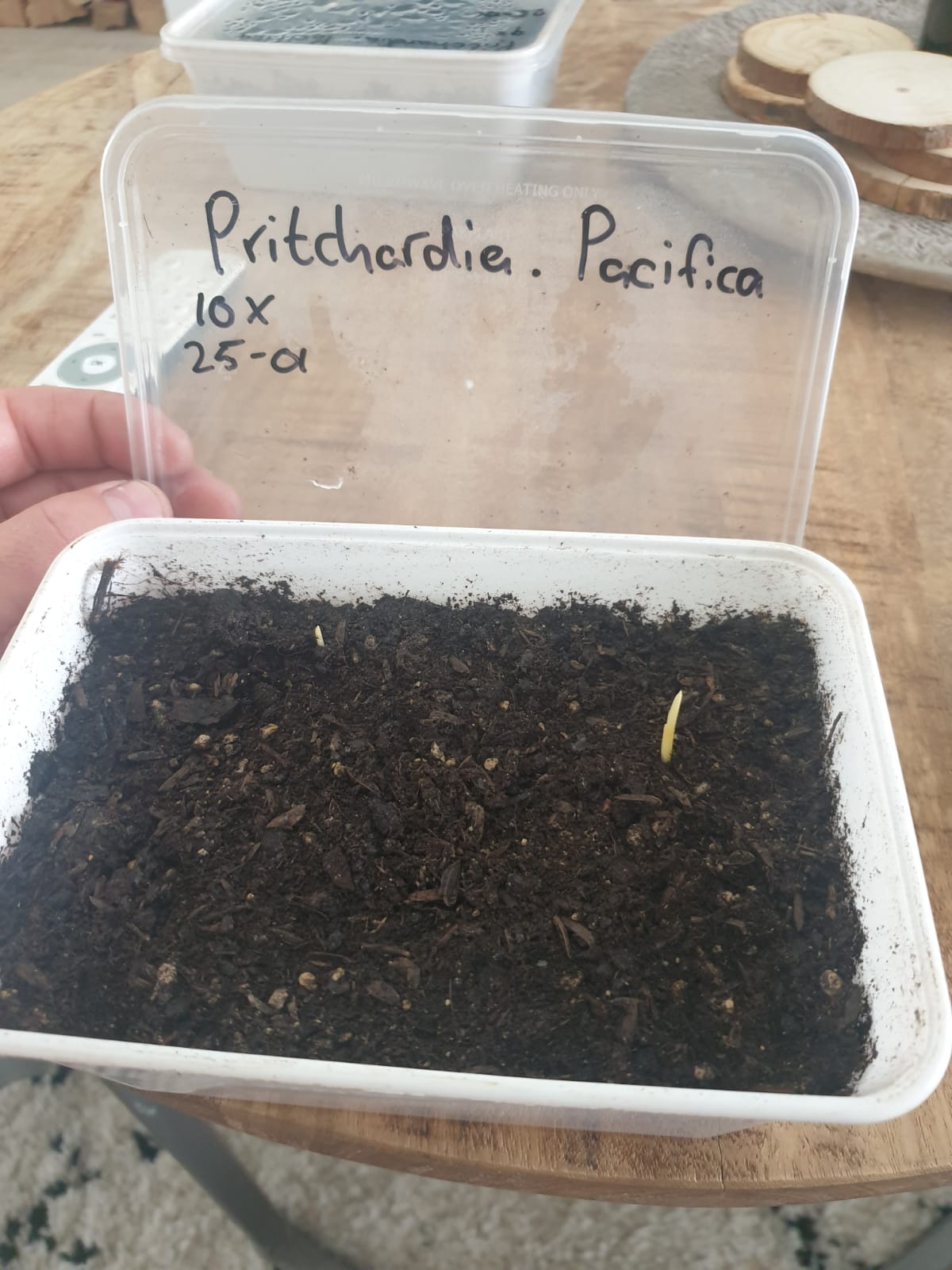 Pritchardia heb je idd zo boven de grond - kiemt snel en betrouwbaar (typisch vind ik >70% opkomst voor P. pacifica en P. Hillebrandti)