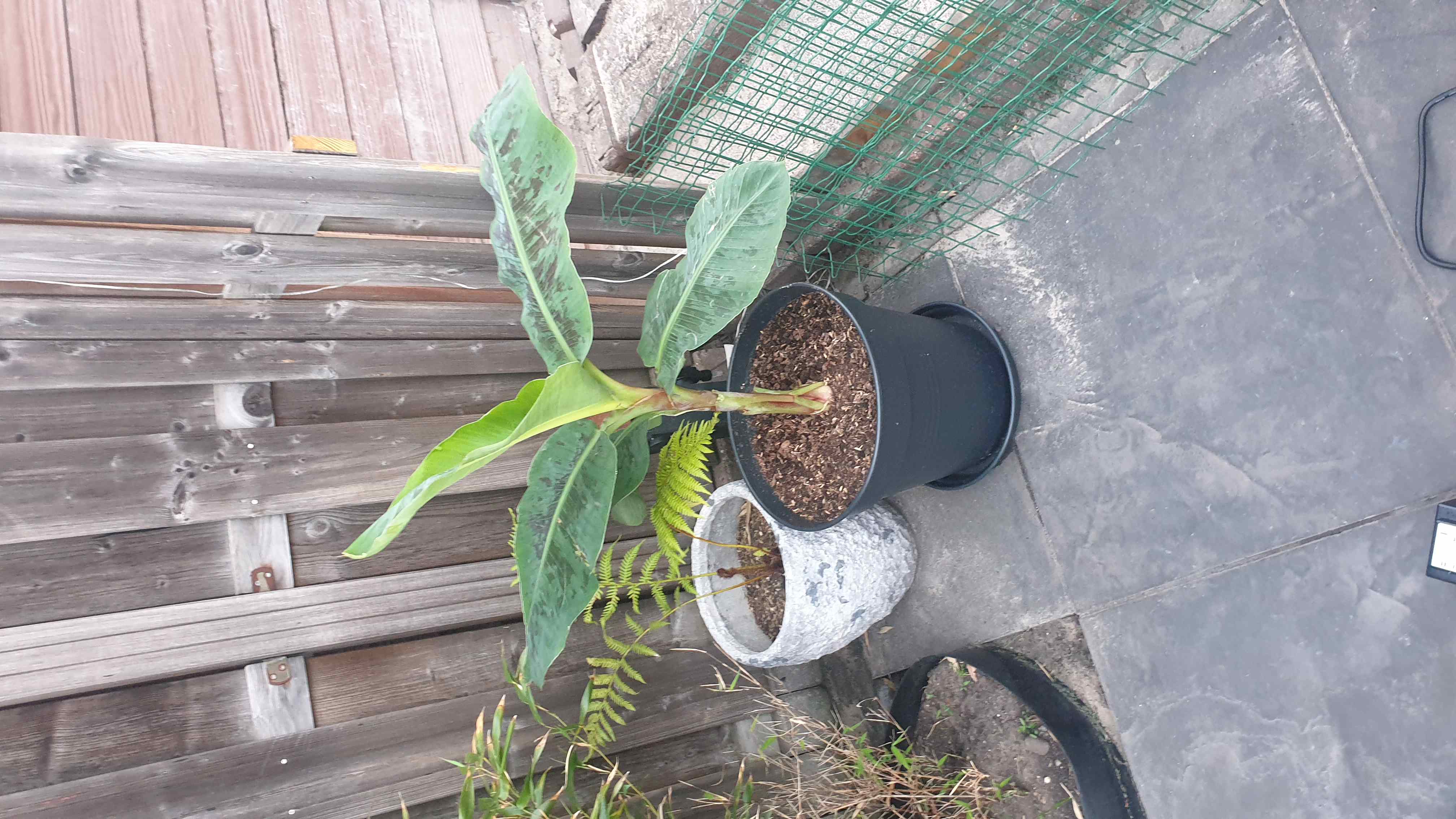 Mijn doel is om uit te zoeken welk soort dit banaantje is (weten jullie dat toevallig?), en of hij ook met de tijd naar buiten zou kunnen om in onze tuin mooi te schijnen. Echter hebben we 1 probleem in de zomer periode staat de halve dag van ongeveer 12 uur smiddags tot 6 uur savonds de zon in de tuin te bakken.