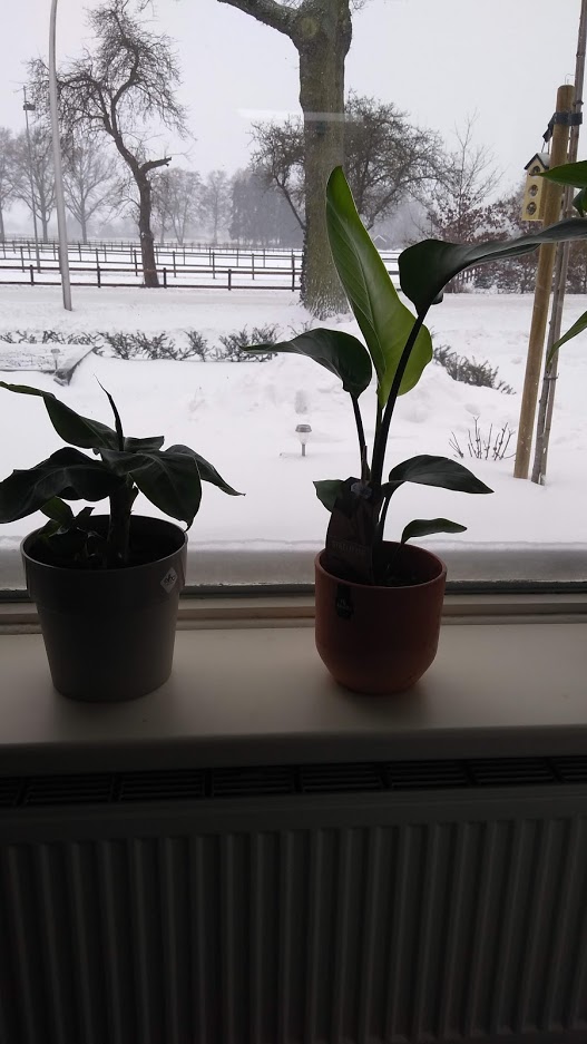 Staat nu mooi te shinen naast banaan. Moeten ze nou met deze kou eigenlijk van het raam af?