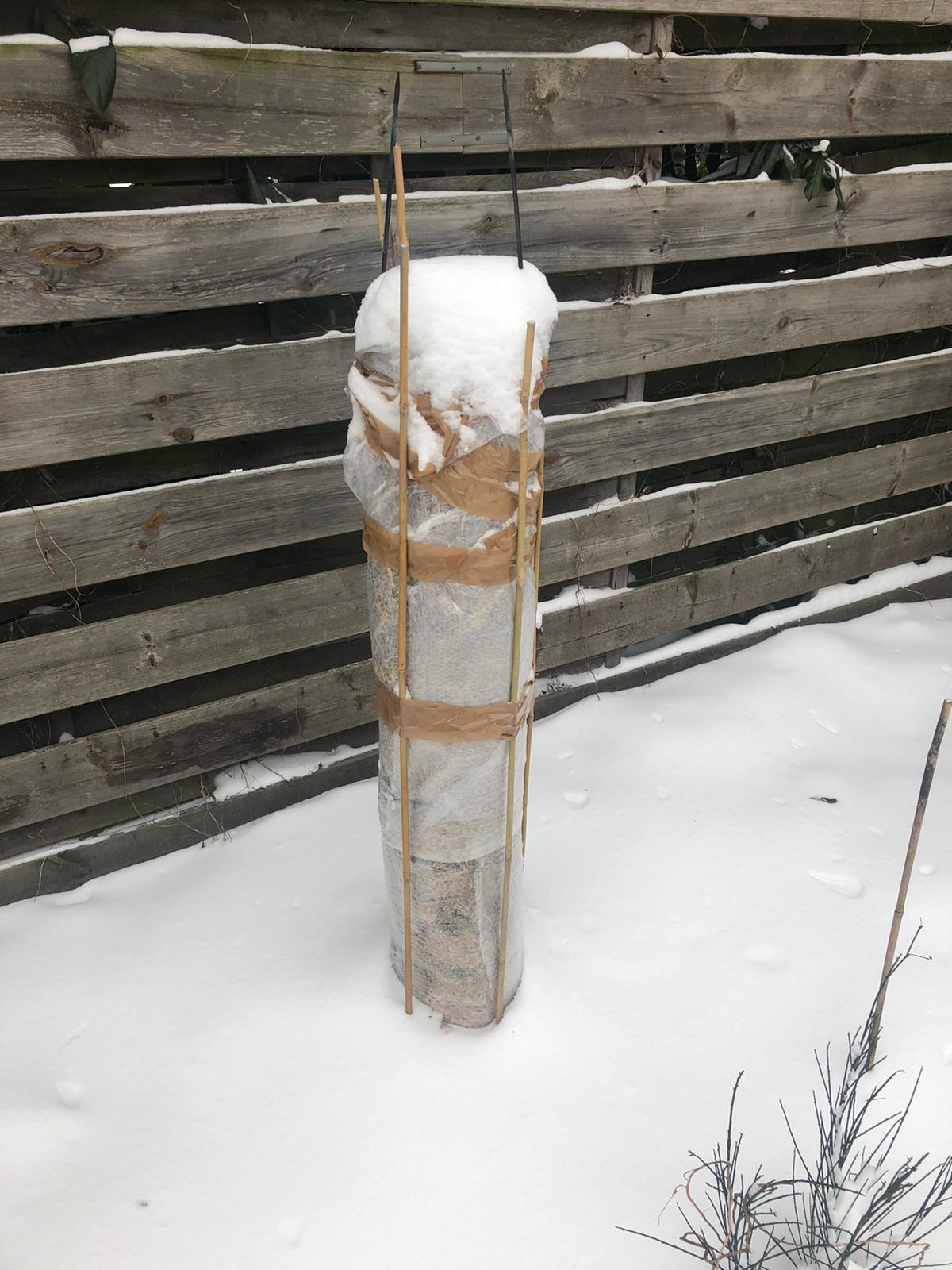 De Chaemerops gaat het met deze bescherming niet redden denk ik. Misschien verrast hij me.