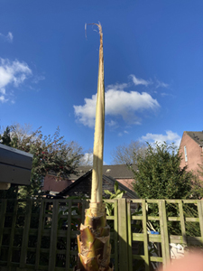 Tijdens de vorstperiode heb ik mijn W. Robusta zoals gebruikelijk ingepakt met vliesdoek en voorzien van een warmtekabel. Na het uitpakken bleek de speer helemaal geel geworden. Misschien toch te warm geweest? Ik heb dit in ieder geval nog nooit meegemaakt. Ik hou nog even hoop; de speer zit nog goed vast. Ik heb maar een streep geplaatst om evt. groei te kunnen constateren, maar als er medio april nog niets gebeurd is kan ik hem waarschijnlijk afschrijven. Zijn er mensen met soortgelijke ervaringen?