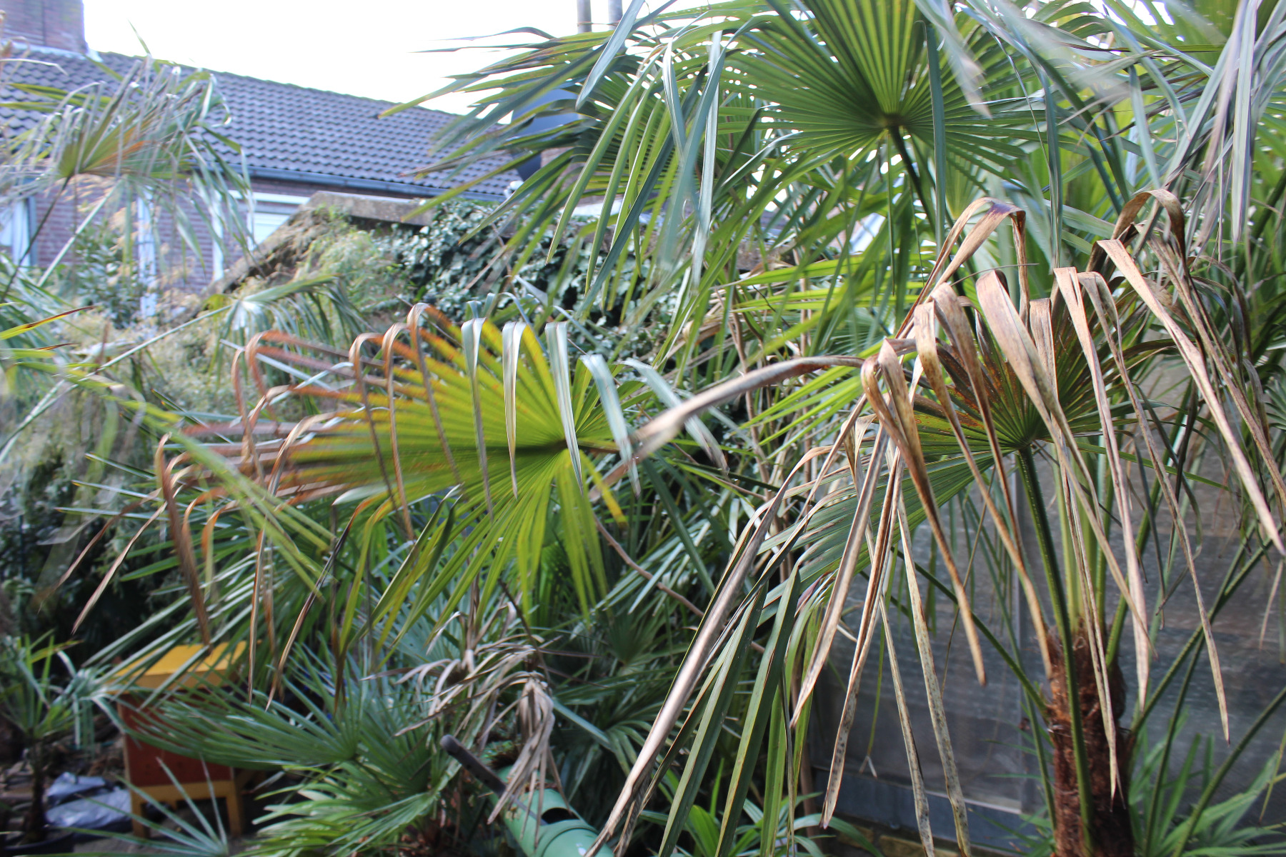 Andere palmen zoals de Tr.fortunei, R.Hystrix, Tr.wagnerianus, Naggy, Sabal minor, Tr. Fort. Var. misan van Garry hebben geen schade.