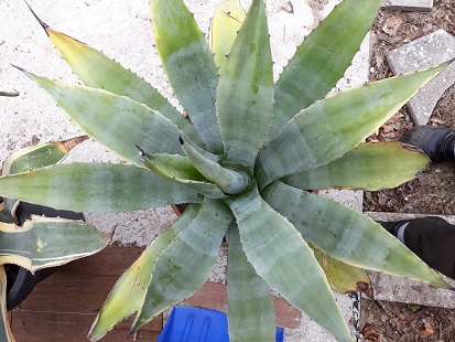 Onlangs heb ik via Marktplaats op twee adressen enkele Agave's overgenomen. Twee grote van één adres, ik vermoed americana's? Een variegata en een blauwe. Ze zouden zo'n tien jaar geleden ongeveer half zo groot geweest zijn: