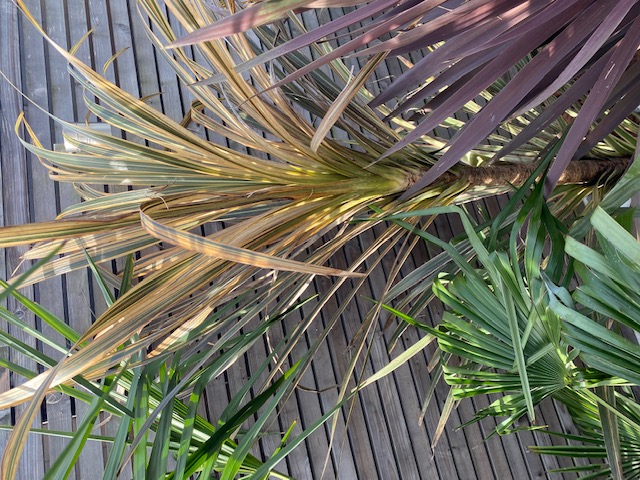 Eén van mijn cordylines ( gelukkig maar één) heeft de koudegolf van vorige week niet overleefd.