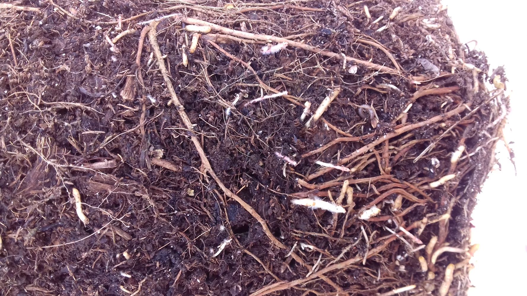 Ik heb wat foto's gemaakt van het wortelstelsel. Bij sommige zijn wat wortels rood en zit er schimmel.