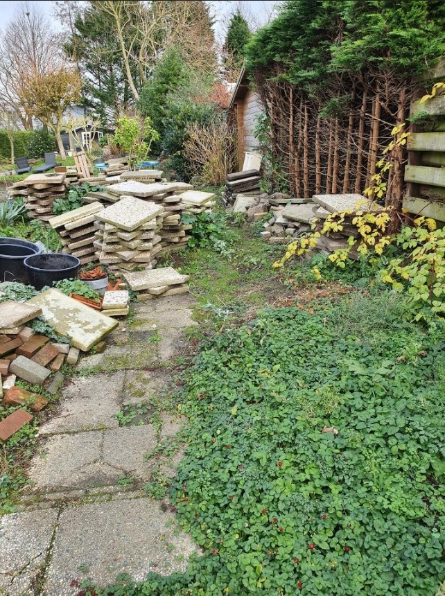 Ik had gevraagd alle tegels op mijn deel te dumpen....dat is dus gebeurd... :o