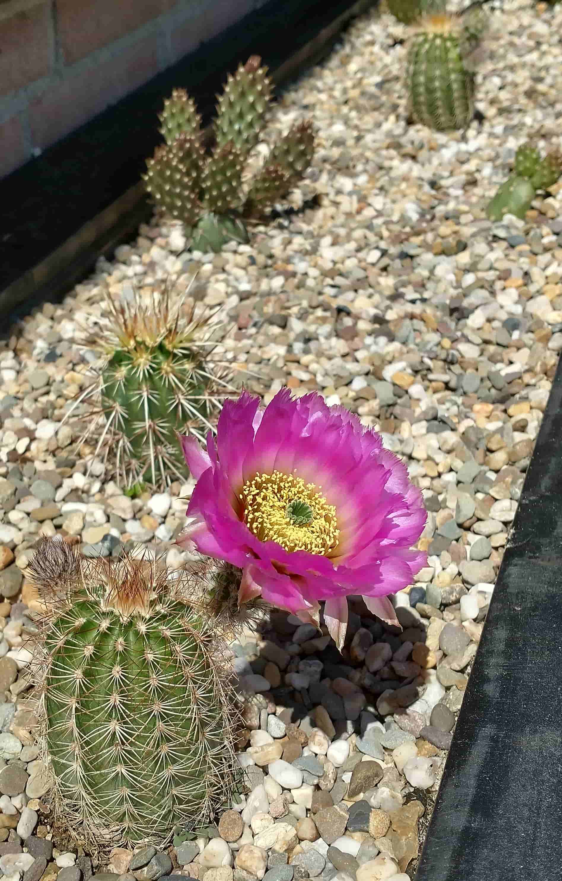 Ook 2 foto's van de Echinocereus reichenbachii ssp baileyi die nu in bloei is op het eerste gezicht iets lichter dan de Röttingen variant, geen idee of dit toeval is of dat dit een aantoonbaar verschil is tussen beide varianten.