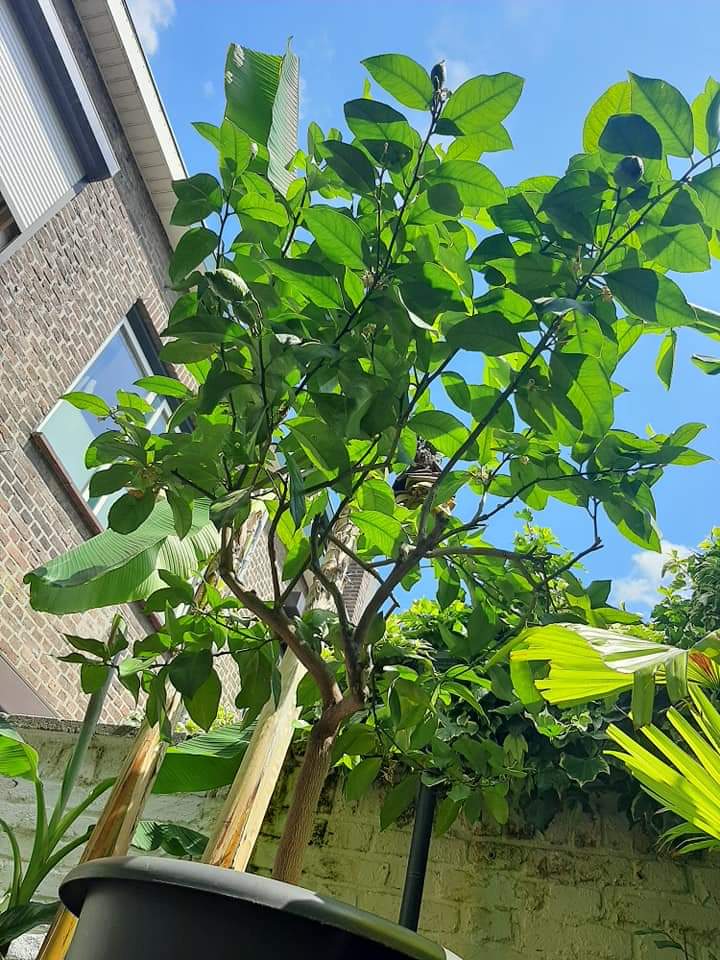 Momenteel heb ik een zelf gezaaide citroen van 5 jaar, een geënte met afrijpende vruchten eraan en een calamondino.