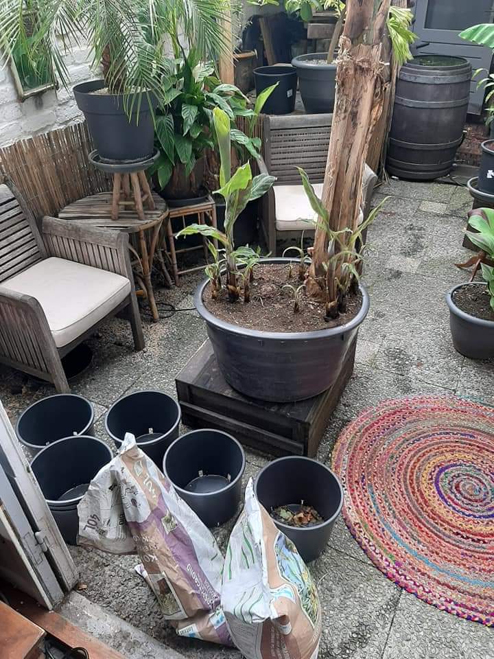 Rechts de super dwarf Cavendish die verkocht wordt onder de naam Musa Tropicana.