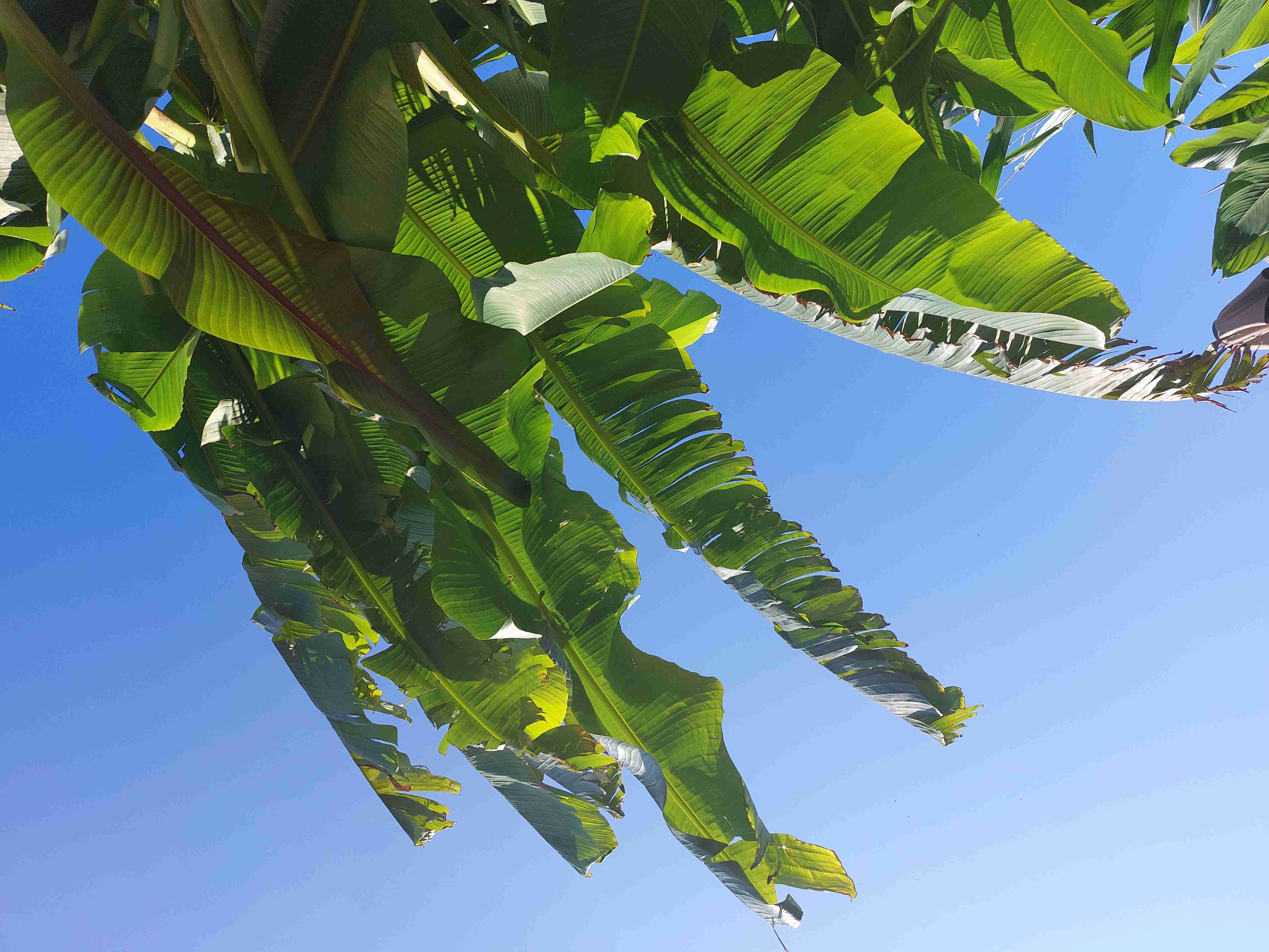 Ligstoel onder palm/banaan klinkt toch echt beter Leon...(alleen weet ze het nog niet).