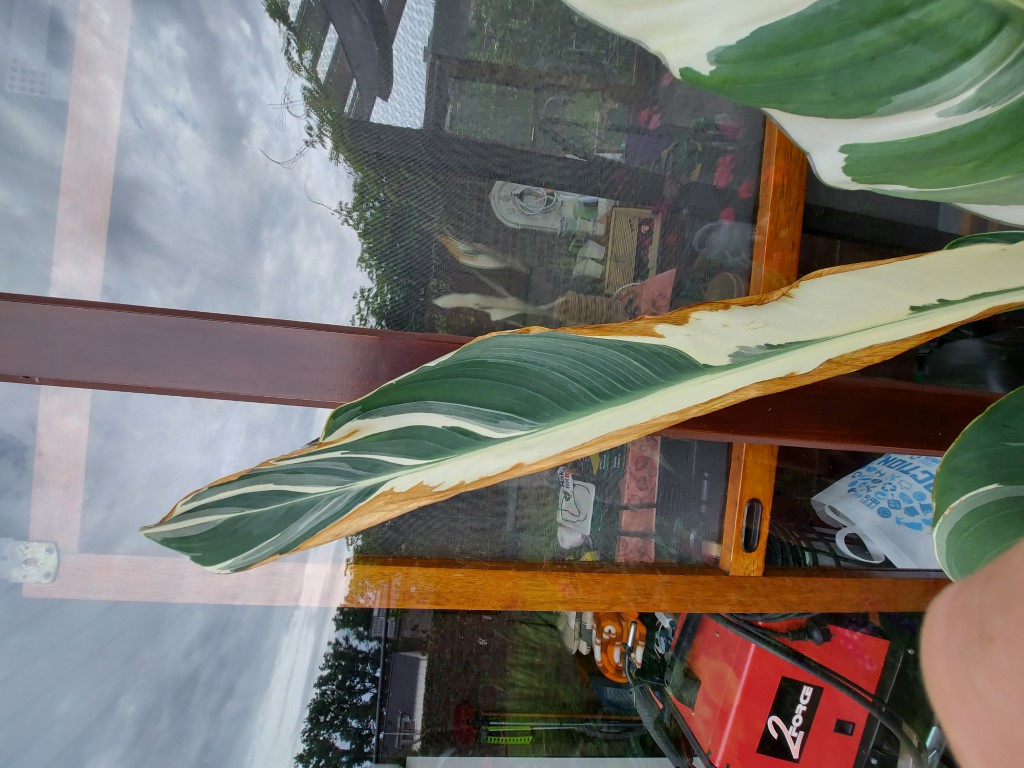 Op een lichte plek zonder direct zonlicht is een mogelijkheid? Het is met name de UV straling die verbranding veroorzaakt. Door het defect in pigmentvorming kan het blad zich niet aanpassen aan de zonnestraling. Vergelijk het met menselijke albino's. Bontbladigheid is vaak instabiel en reverteert soms naar de groenbladige vorm. Die kun je dan beter verwijderen.