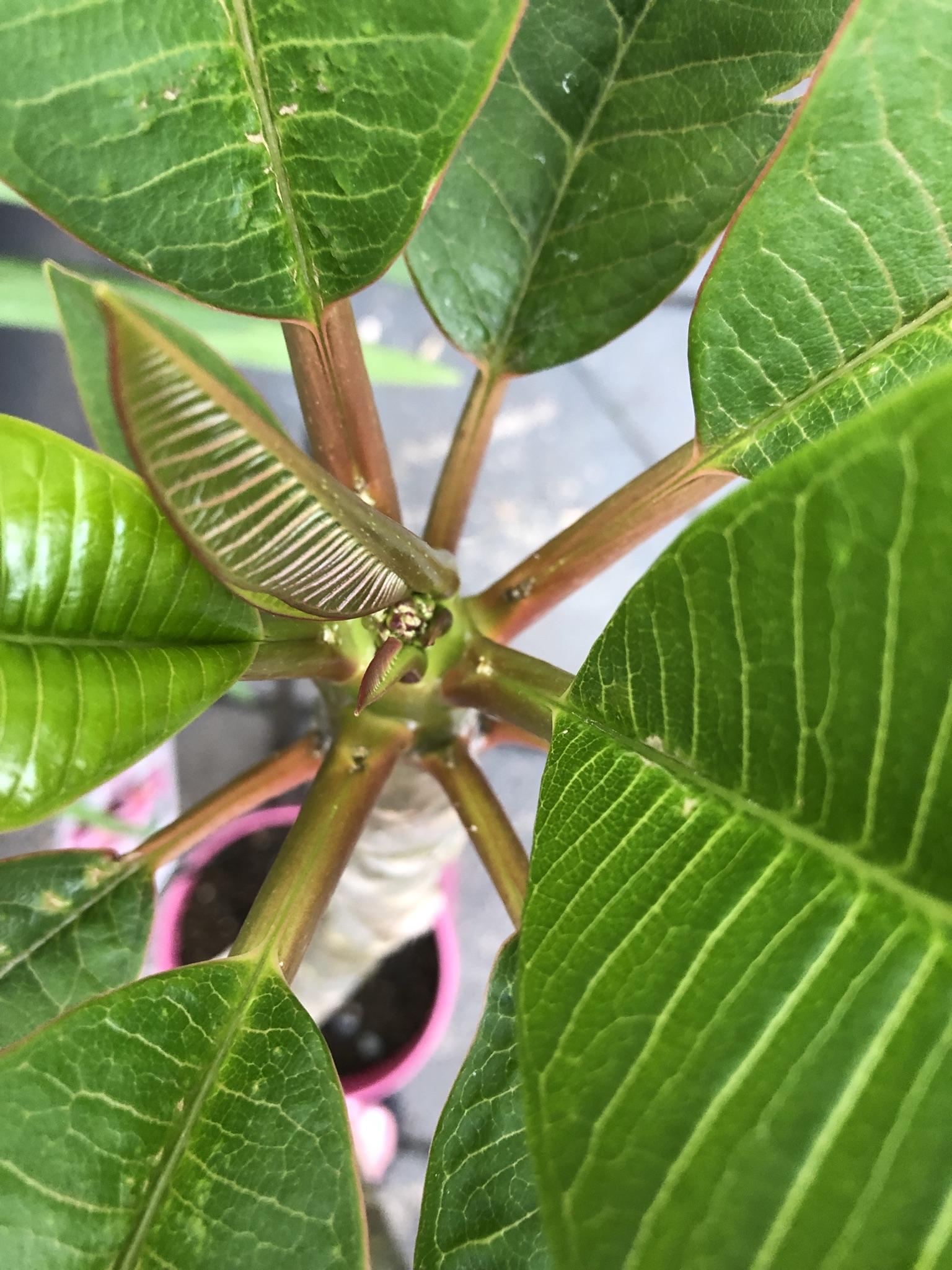 Re: Hoe ziet een beginnende bloei van een Plumeria eruit?