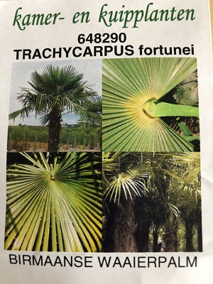 Ik was op zoek naar zaad van de Trachycarpus 'Wagnerianus'. De verkoper vertelde mij dat dit zaad dus van de 'Wagnerianus' zou zijn. En dat de nederlandse benaming Birmaanse Waaierpalm zou zijn terwijl de normale Fortunei de 'chinese windpalm' heet. Op internet kan hier echter niks over terug vinden. Klopt het wel of is dit de normale Fortunei Hier het etiket van de verpakking