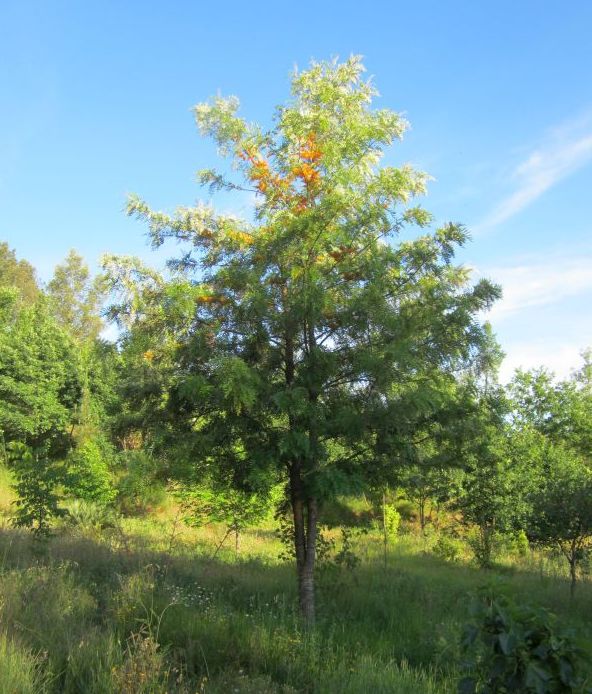 De boom is circa 8m hoog en staat nu 8 jaar in de volle grond.