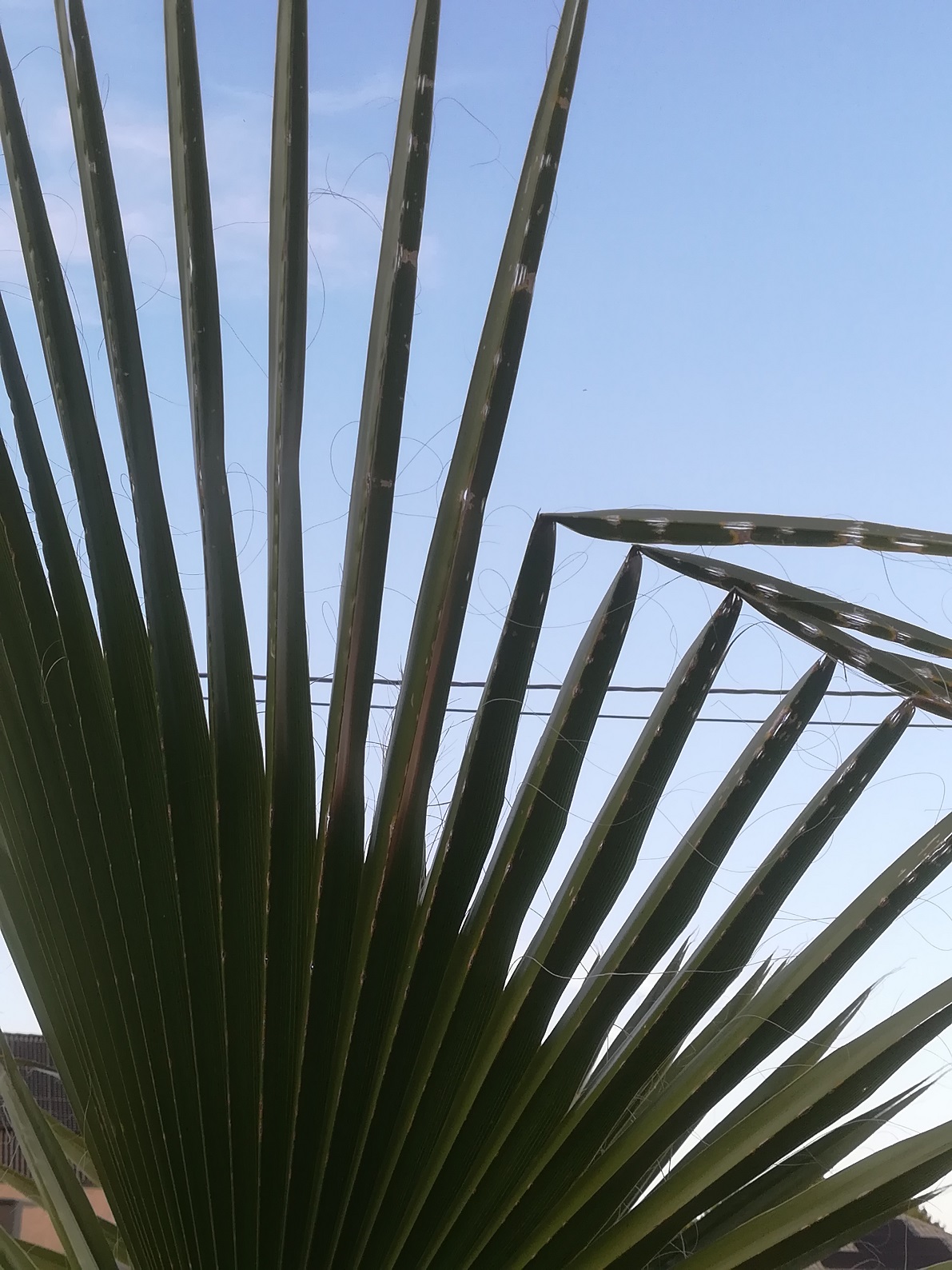 Vlekken op Washingtonia robusta laatst aangemaakte bladeren.