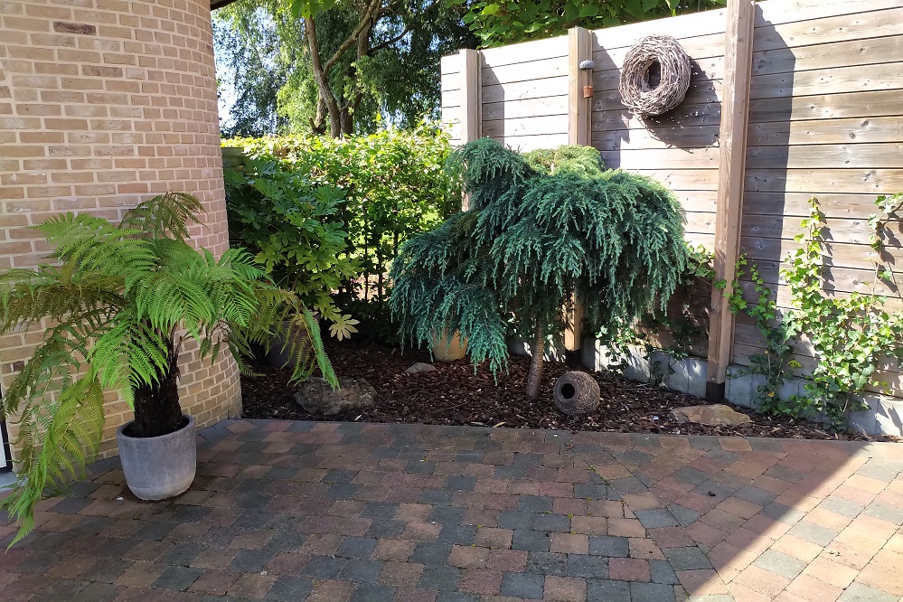 De tuin zelf is nog maar 4 jaar oud en het is pas vanaf dit jaar dat we begonnen zijn met onze tuin een exotischer uiterlijk te geven. Voorheen beperkte het zich tot de vijver, de haag (coniferen), gras en wat beplanting. foto's in bijlage bij maar zoals gezegd betreft dit een zeer jonge tuin.