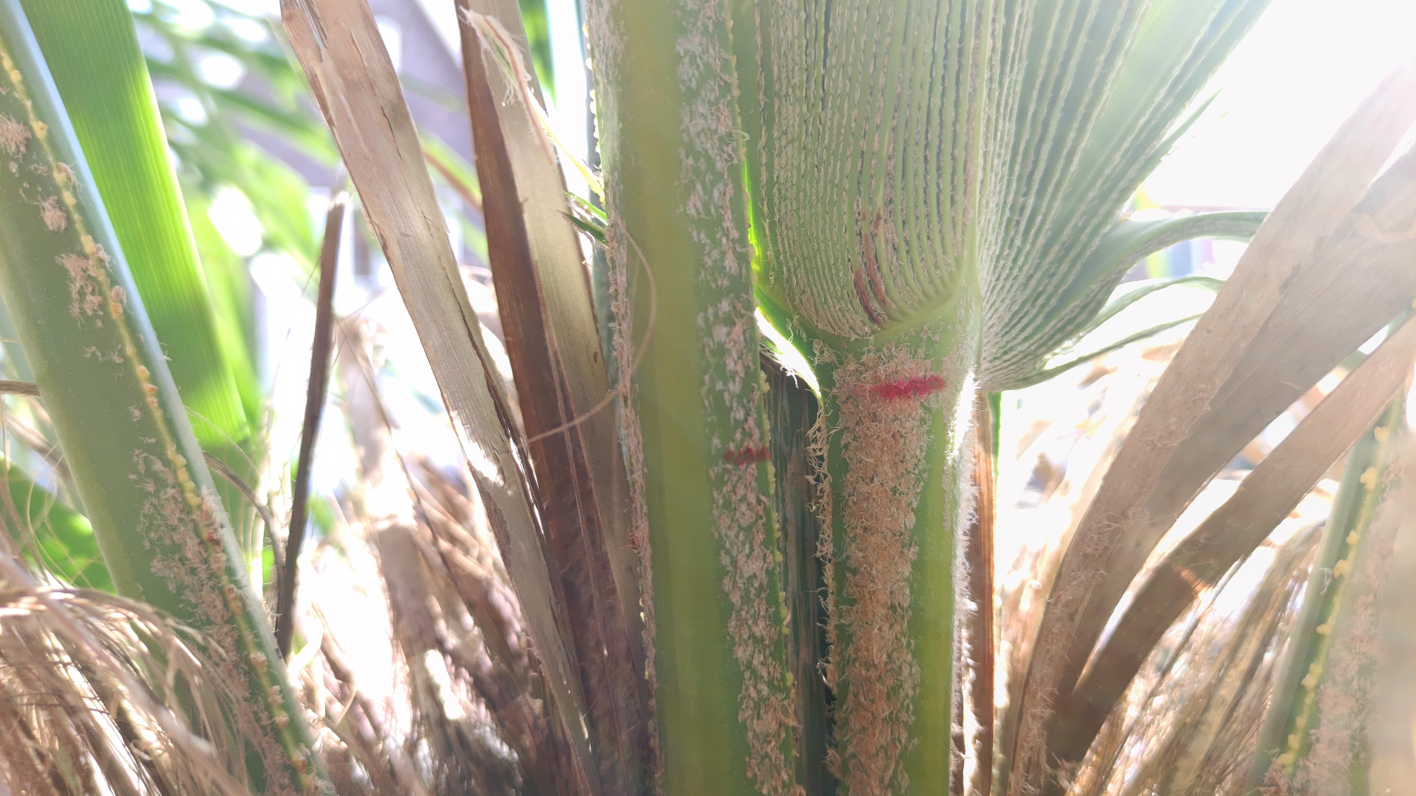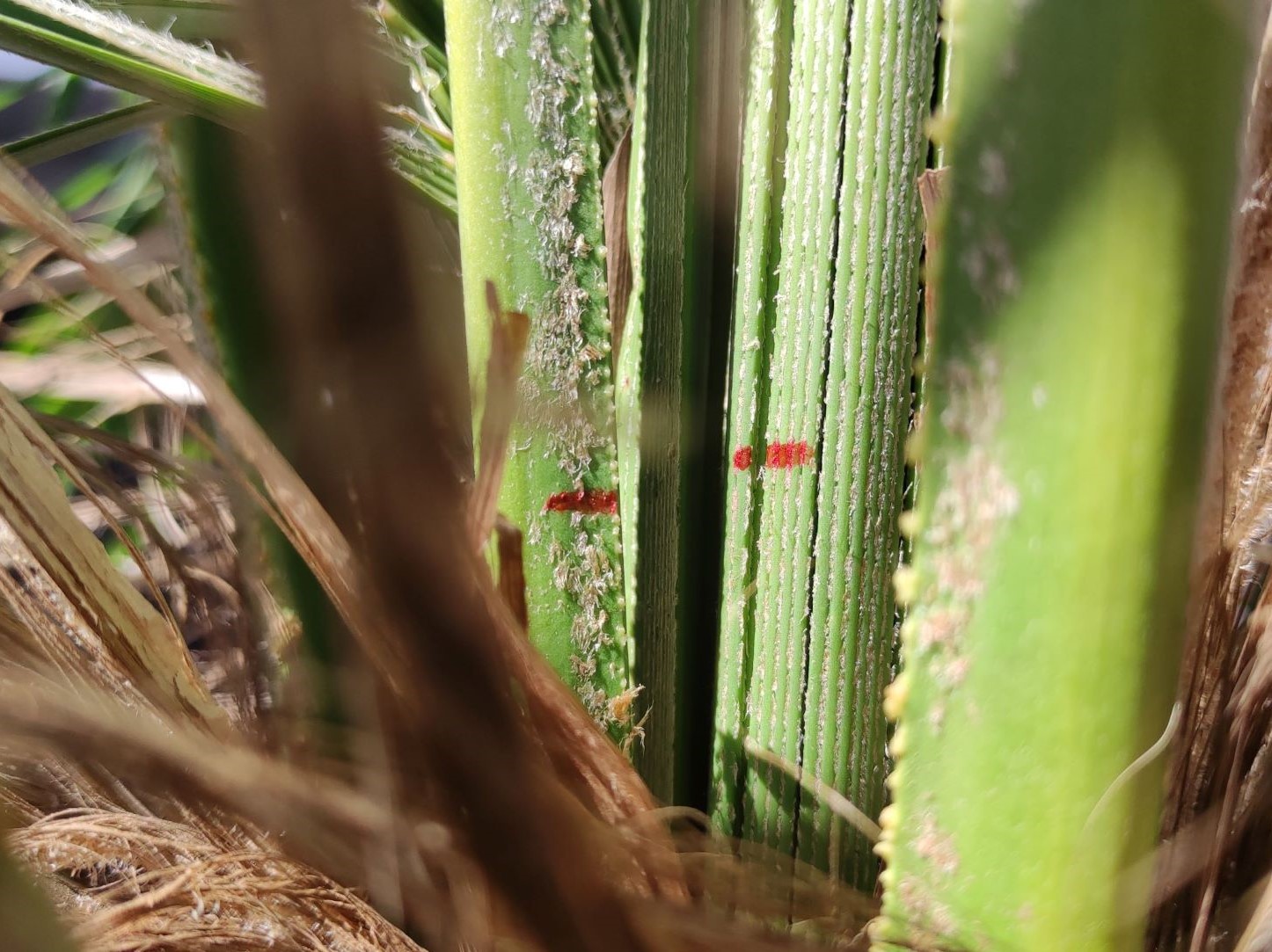 Een paar dagen na het planten (toen ik dat slap blad opmerkte), heb ik 2 verschillende speren gemarkeerd om de groei te monitoren. Het lijkt erop dat deze al die tijd gewoon lekker aan het doorgroeien is. Heb de palm ook verwend met wilgenwater (misschien heeft dit veel geholpen), maar vraag me dan af of ik nu alweer voeding mag geven?