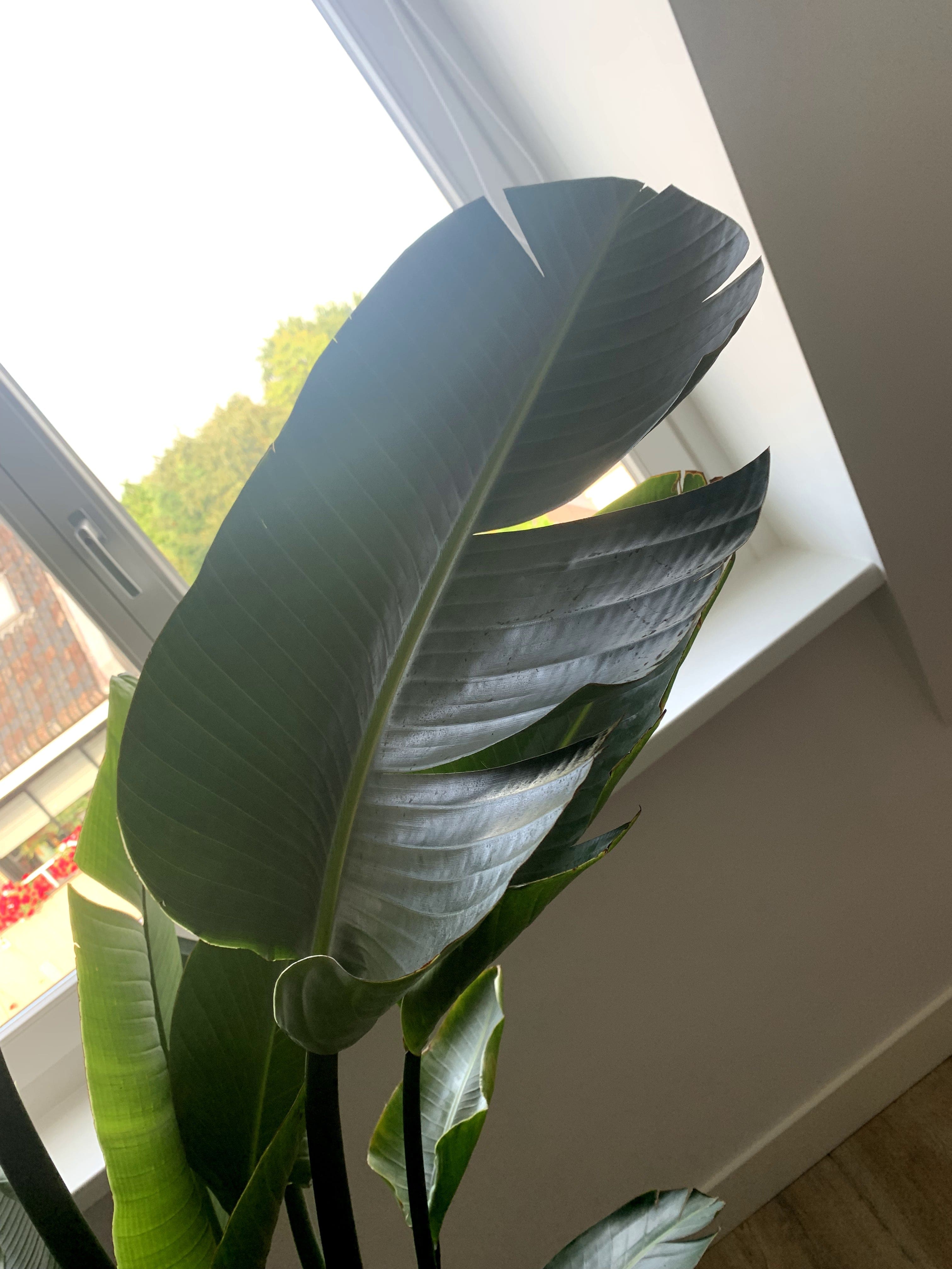 Sinds zaterdag ben ik de eigenaar van een mooie strelitzia Nicolai van 200 cm. Toen ik hem kocht was hij perfect. Alleen de dag erna begonnen de bladeren krom te trekken en verkleurt een blad (de buitenste en ik las dat dit normaal is). Ik ben erg benieuwd hoe jullie de plant eruit vinden zien en of ik iets verkeerd doe. Hieronder zal ik de omstandigheden opsommen: