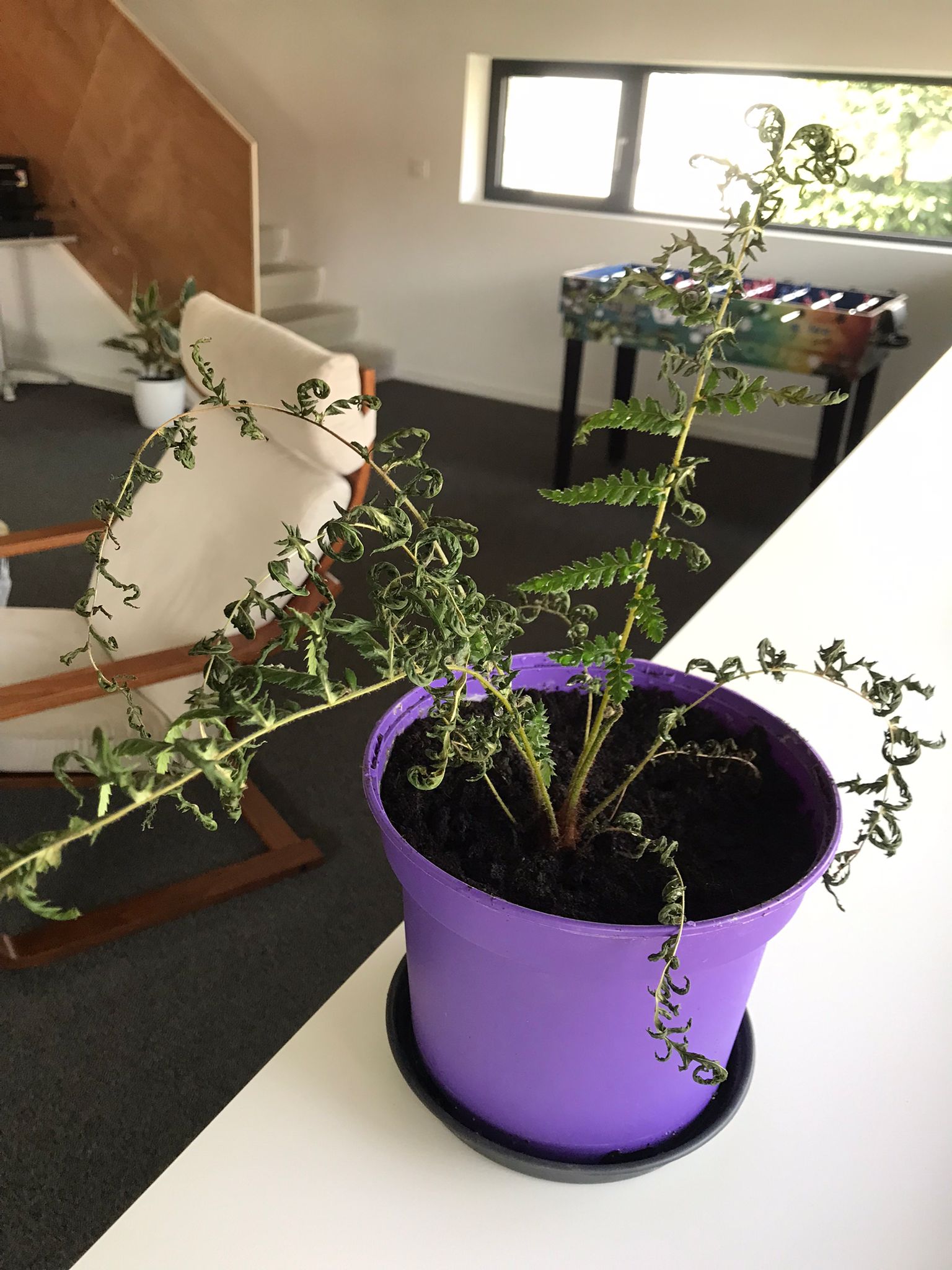 Wij hebben enkele weken gelden een baby-Dicksonia varen gekocht. Vaak water gegeven en in schaduwrijke plek (geen direct zonlicht) gezet binnen.