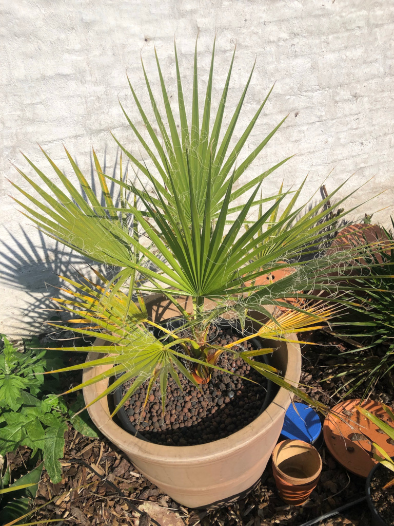 Dit voorjaar heb ik een Washingtonia Filifera aangeschaft. Na aankoop heb ik hem direct verpot in een grotere pot en hem een plek in de zon gegeven.