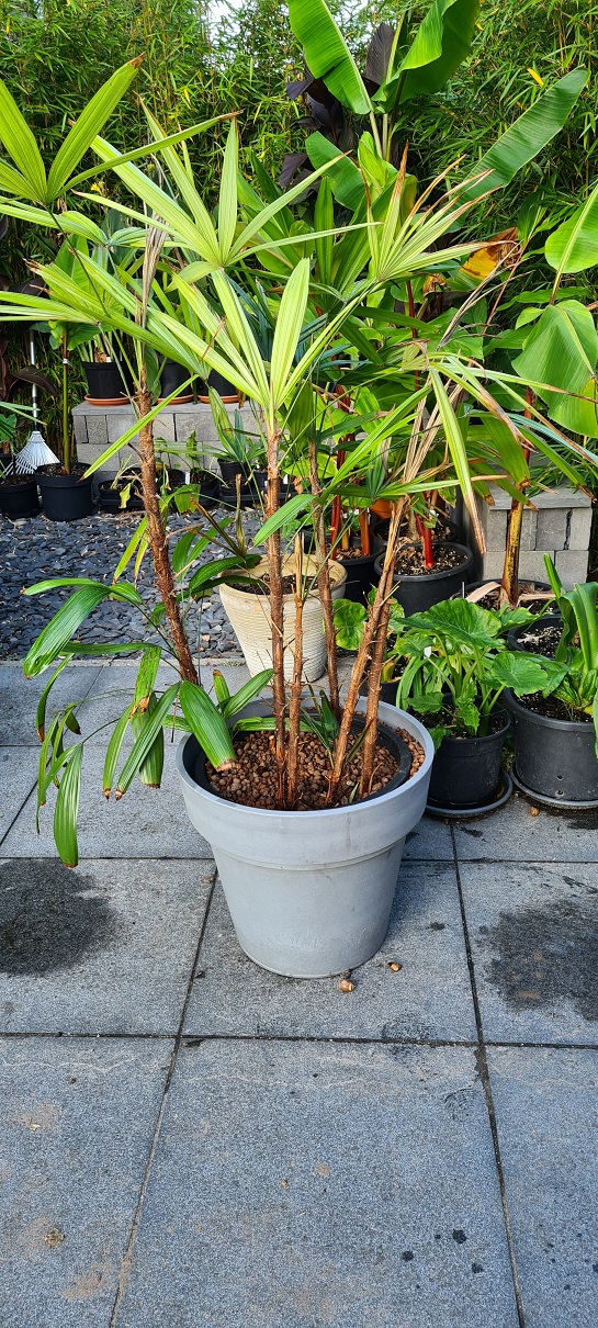 Ook de Licuala ramsayi staat goed alleen gaat de groei erg traag een enkel nieuw blad deze zomer, het komt nu langzaam uitgevouwen omhoog,
