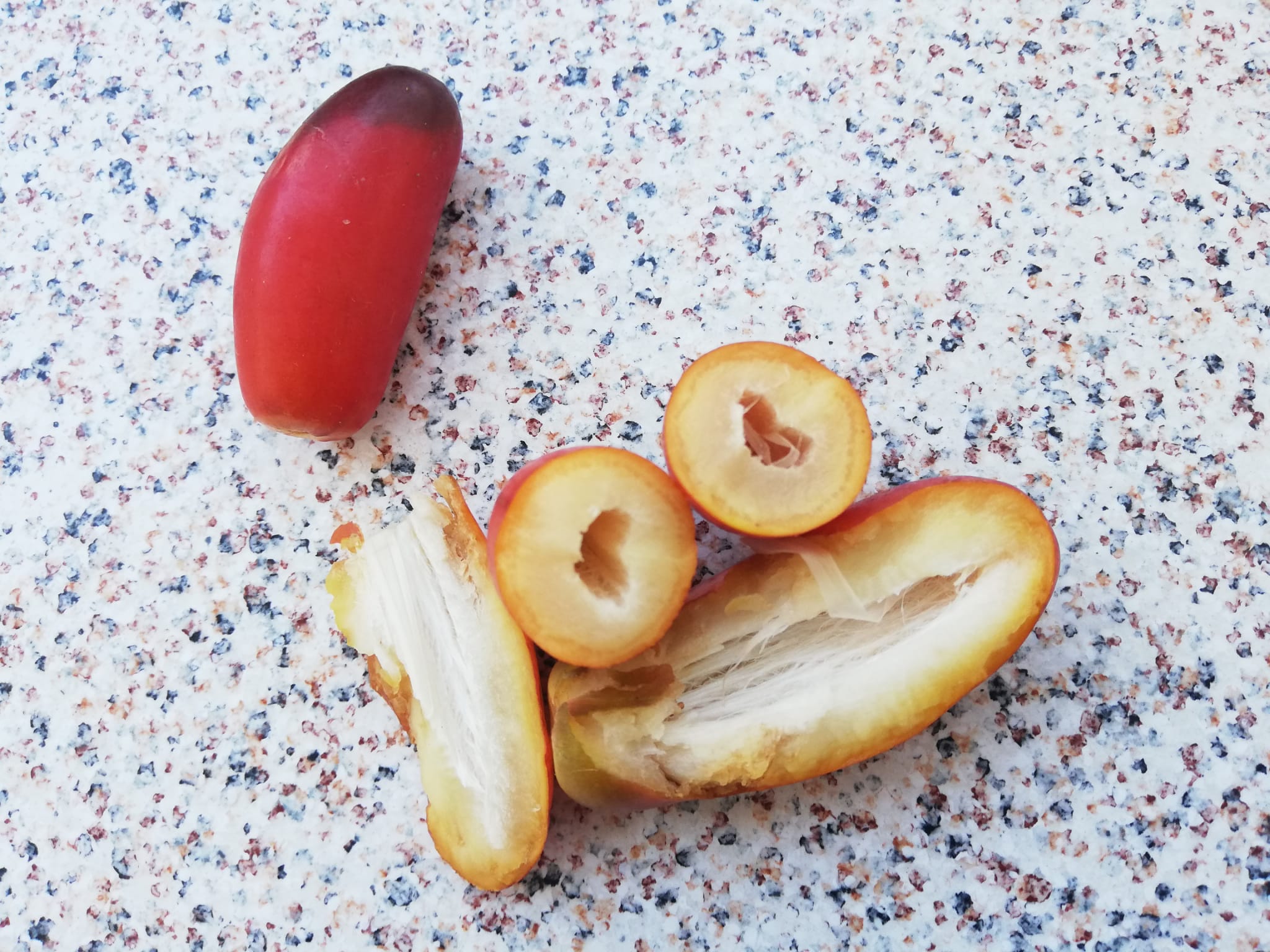 Troy schreef:Parthenocarpe vruchten van de dadelpalm. De oorzaak van het ontbreken van het zaad is doorgaans het gevolg van natuurlijke bestuiving met lage compatibiliteit tussen de mannelijke en vrouwelijke bloeiwijze of door bestuiving buiten de receptive interval van de vrouwelijke bloei.
