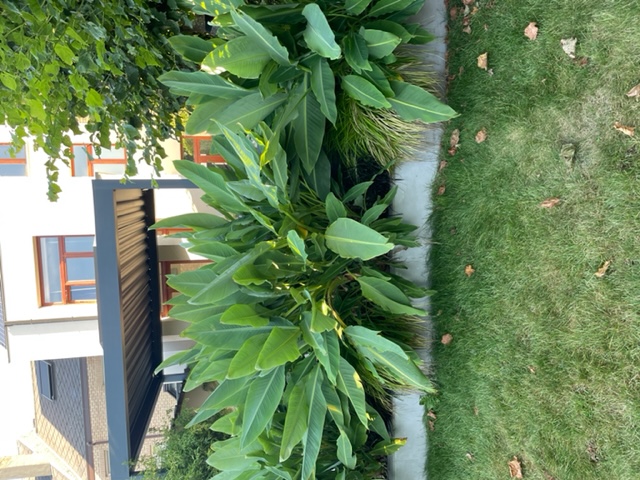 Afgelopen winter had die hoek van de tuin op de bananen toch wel wat schade.