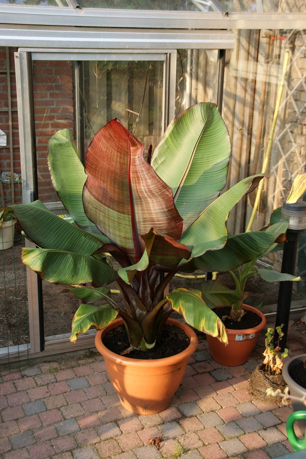 Banaan weer naar beneden gehaald en langzaam weer water gaan geven en aan het licht laten wennen. In de winterperiode op zolder maakte de banaan nog enkele groene bladeren aan, maar hier heb je verder niets aan. Ze zorgden wel voor voldoende droogte tijdens de winter, maar bij dag/zonlicht sterven die af en zijn zeker niet mooi.