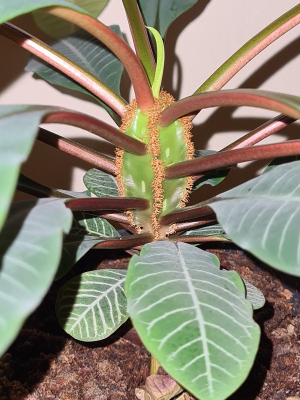 Dacht dat de bloemen zaden uit die dikke stamkraag kwamen maar dus uit mini bloemetjes startend in de blad oksels, begreep ik later.