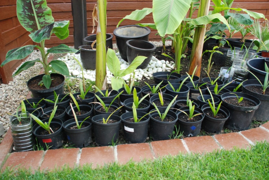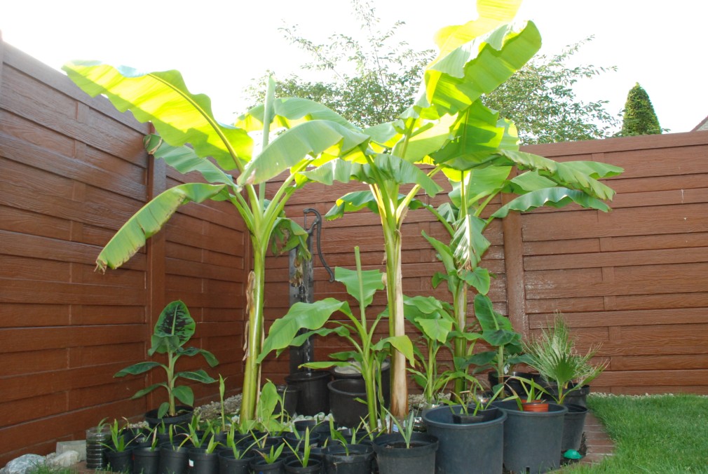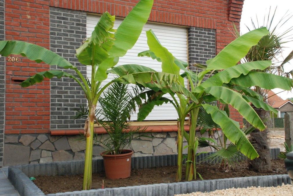 Nog enkele Musa Basjoo's andere kant van huis + Ph Canariensis in reserve (moest die in volle grond het loodje leggen),helemaal recht de Trachy Fortunei die eindelijk begint aan te slaan na 2 jaar in volle grond !!!
