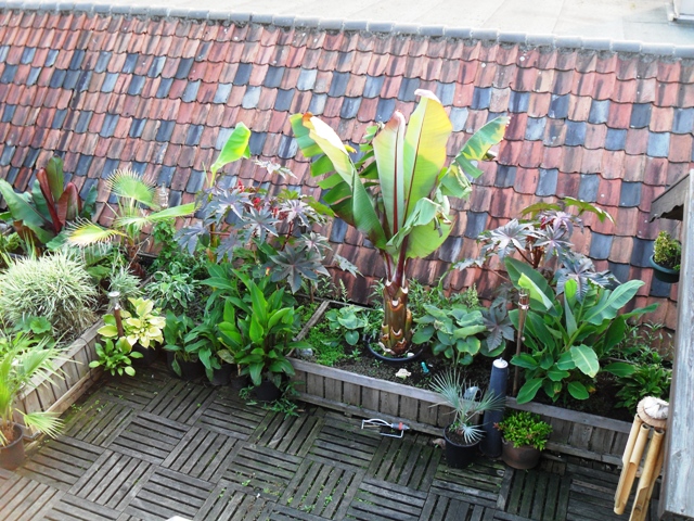 hier een paar foto's van het dakterras van mn buurman/collega en ik. we wonen boven het bedrijf waar wij werken.