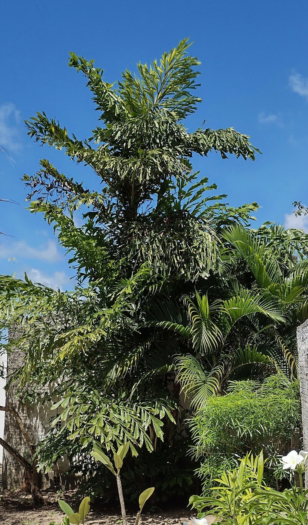 Caryota mitis (fishtail palm) begint best groot te worden, nog geen bloei.