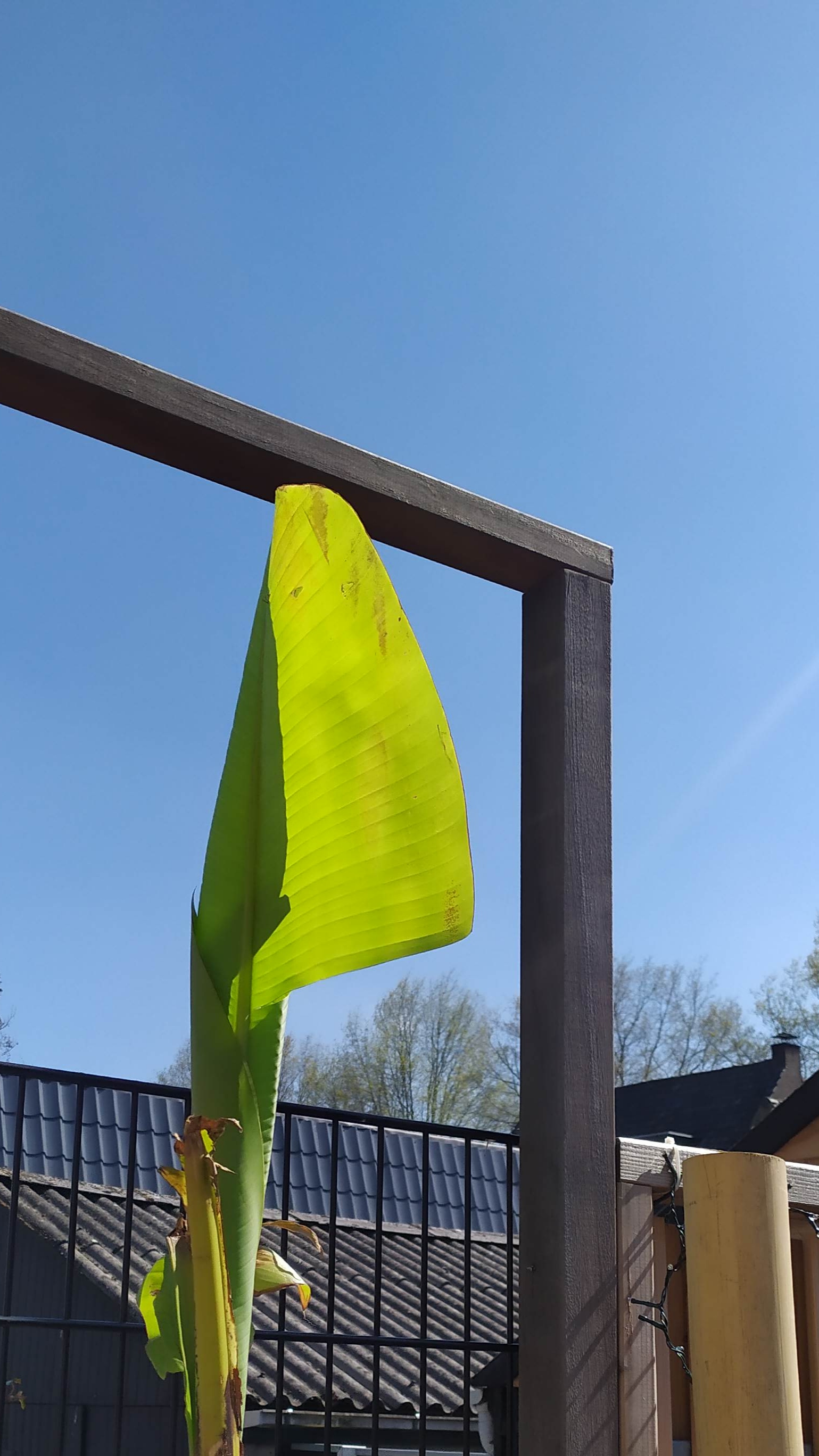 Een zuidgerichte schutting klinkt als een geweldige plek. Kijk ook ff naar de wind. Als die banaan boven de schutting uit piept, en elk nieuw blad waait steeds aan flarden dan word ie er niet mooier op