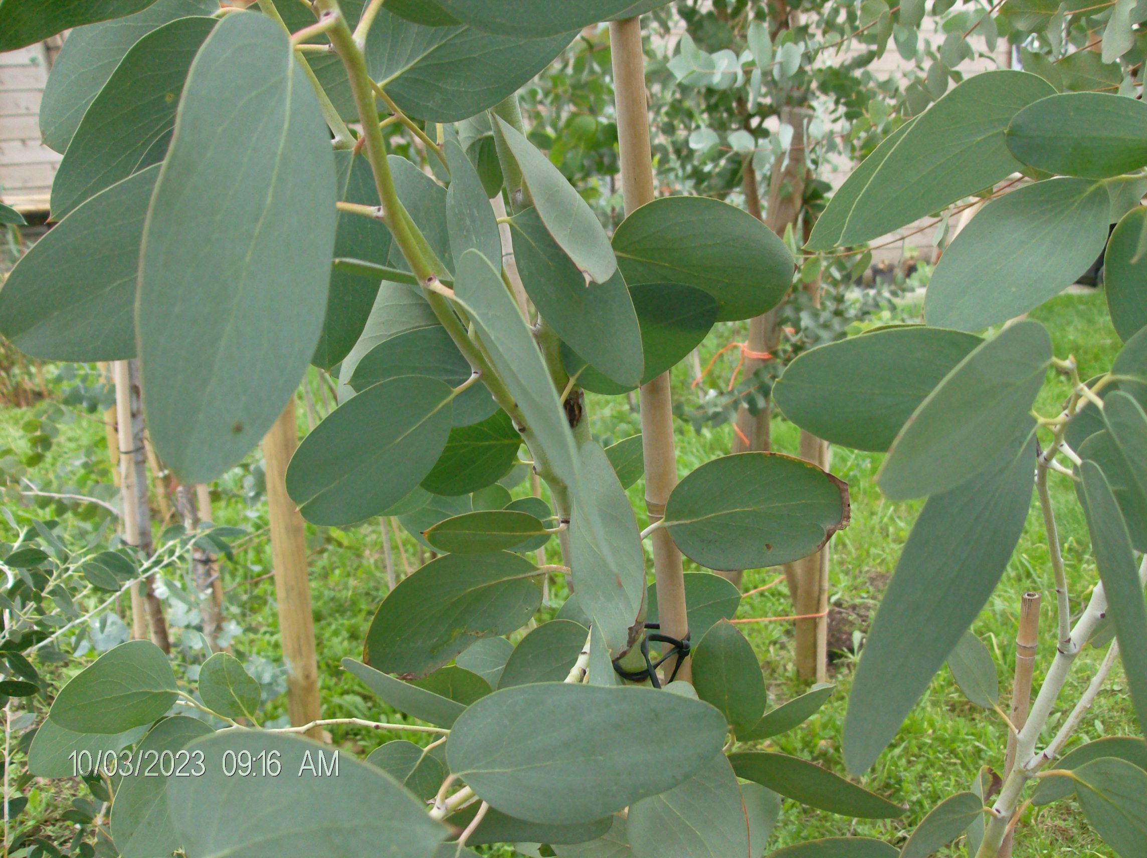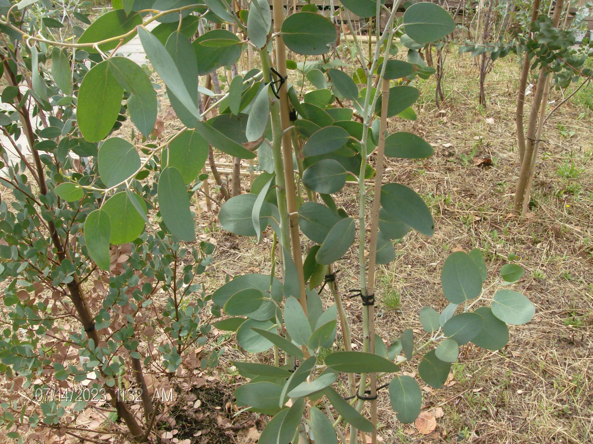 E. camaldulensis was gedeeltelijk doodgevroren in december 2022/januari 2023, maar liep gelukkig opnieuw uit.