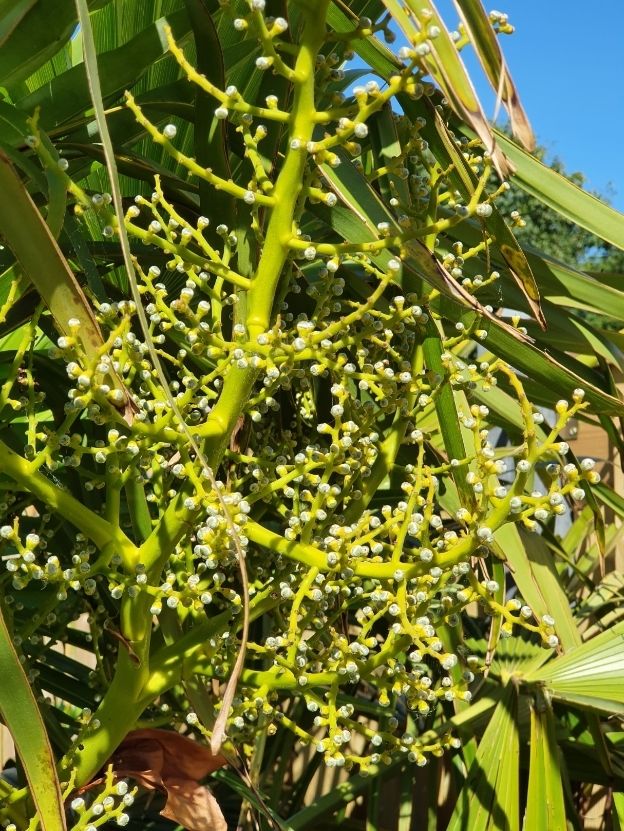 Ik heb bij het tuincentrum een heel klein stukje mannelijke bloem meegenomen, en dit over de bloemen van mijn Trachycarpus gewappert, daarna met een klipje aan één van de bloemtakken bevestigd. Nu op alle 4 takken groene bolletjes die groter worden. Is 4 takken niet wat veel ?