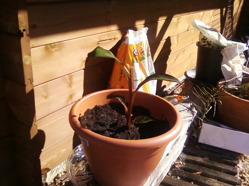 Ik moet mijn ensete ventricosum Maurelli gaan verpotten vermits de wortels door de drainage gaten komen van zijn pot. Deze zit in volle groei en maakt bijna wekelijks een nieuw blad.