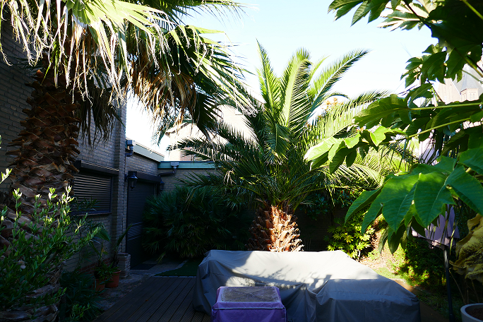 Ik zal kijken of ik nog een foto kan plaatsen, aangezien mijn foto's vaak te groot zijn om hier rechtstreeks te uploaden. Daarnaast is het erg moeilijk om de echte grote nog op de foto zichtbaar te krijgen, de Washingtonia is min of meer alleen de stam nog zichtbaar in de foto vanuit dezelfde hoek genomen.