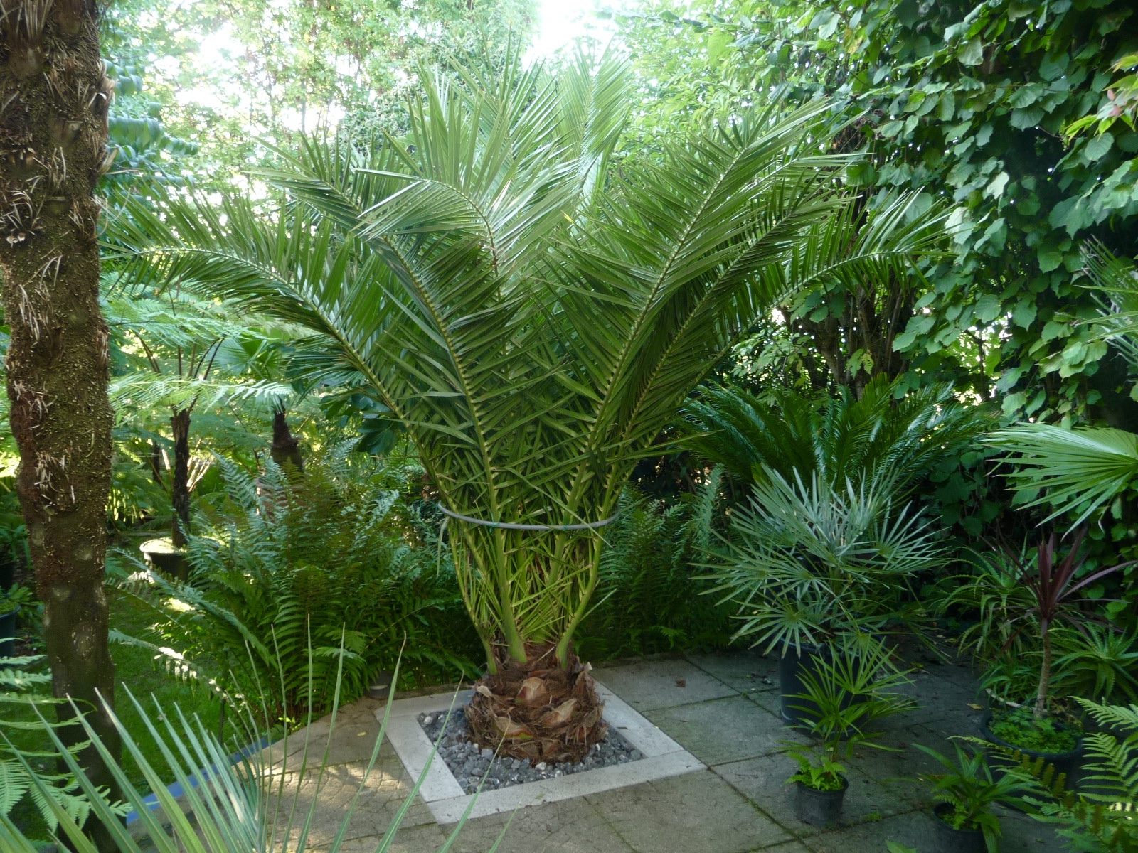 Dank je voor de tips en het advies, denk dat de groei er al inzit de nieuwe speren komen nu al boven de bestaande kruin uit! Dat gaat dus snel, denk dat de wortels de grond wel lusten als ik de Trachy's bekijk in de voortuin die hebben bijna 5 m stam die staan precies 10jaar in de volle grond, hier nu ook al 8 palmen in de volle grond, de boomvarens overheersen nog al gaat dat wel veranderen mochten deze droge hete zomers aanhouden want dat is de reden voor de veranderingen die mijn tuin nu langzaam ondergaat ;)