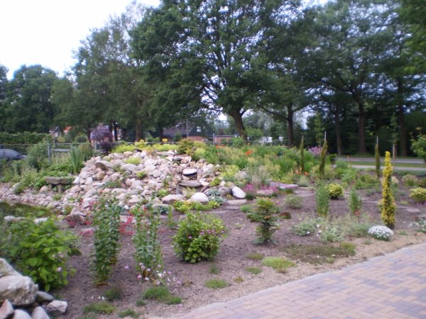 Die heuvel met wandelpaadje erover is leuk gevonden. Ik vind het rotstuin-idee ook wel heel tof, mooi uitgevoerd! Als de planten wat groter en voller zijn gaat het super worden!