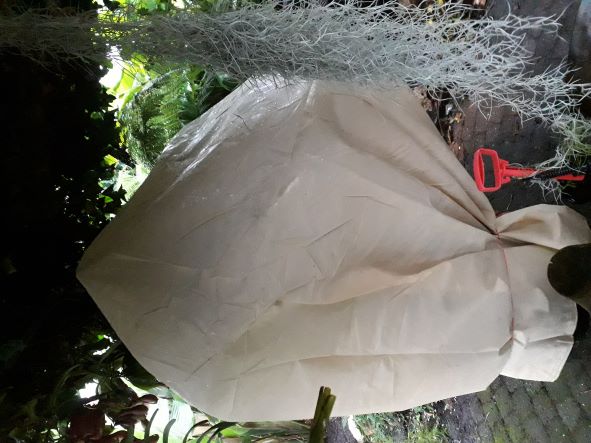 De Washingtonia vonden de tuinmannen te gevaarlijk om in te pakken