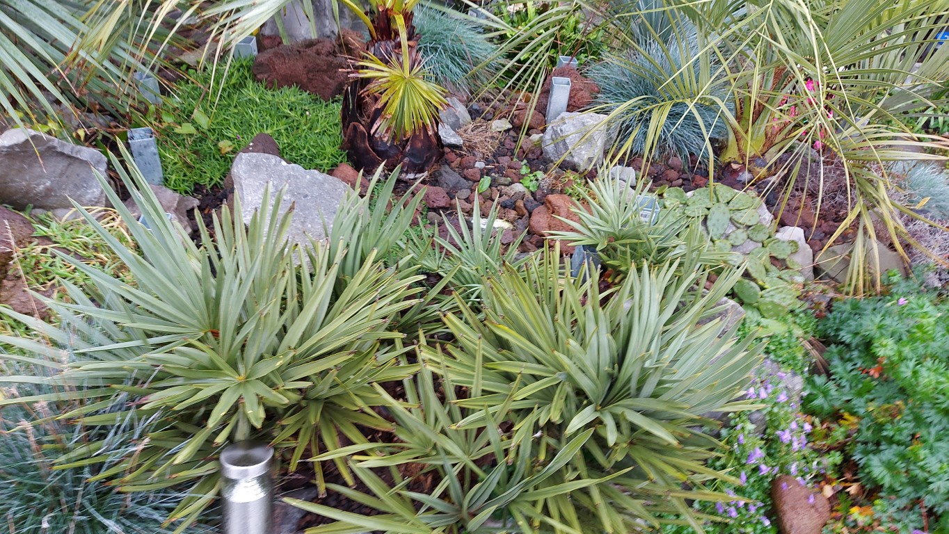 Ik denk ik de palm maar als kuipplant houd. Ik heb 40 jaar ervaring met kuipplanten en er zijn genoeg winterharde planten om de tuin een exotisch aanzien te geven.