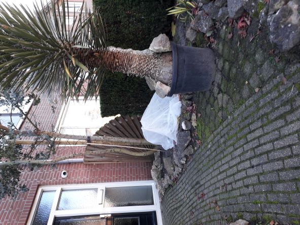 Washingtonia in de voortuin.
